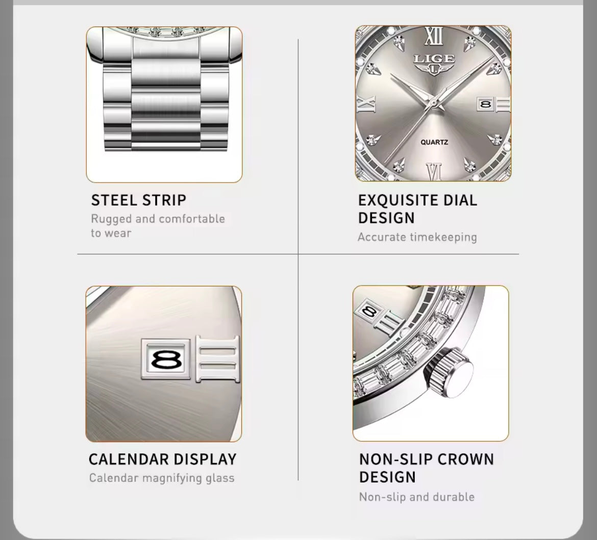 Apportez une touche de style moderne et raffiné à votre poignet avec cette montre LIGE pour femmes. Son boîtier et bracelet argentés allient élégance et sobriété, tandis que le cadran disponible en plusieurs couleurs vous permet d’adapter la montre à votre style ou à vos tenues. Idéale pour le quotidien, le travail ou les occasions spéciales.